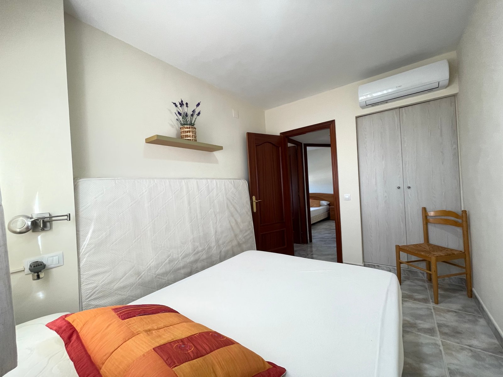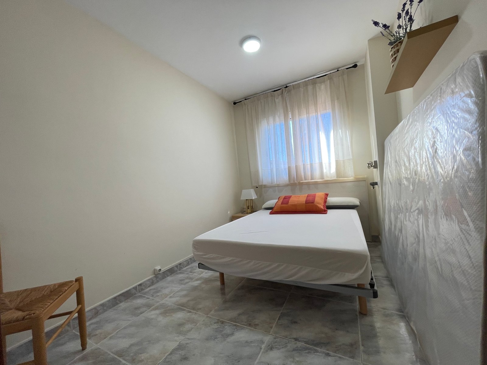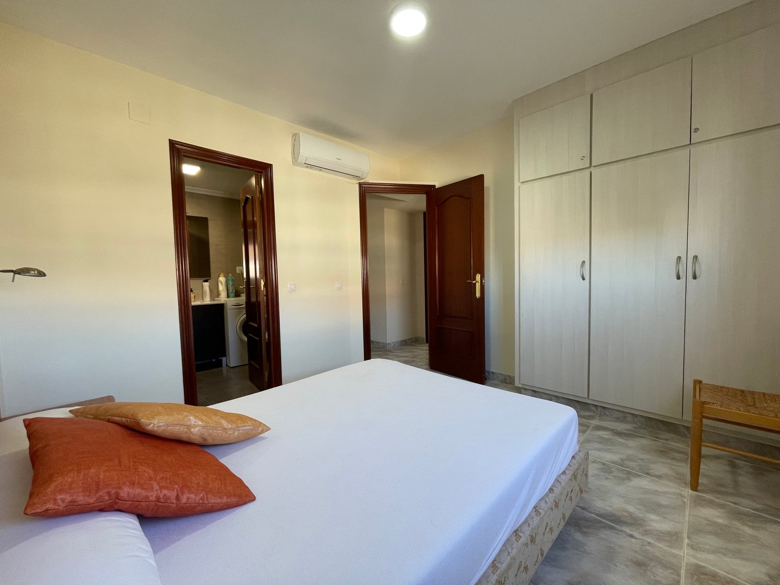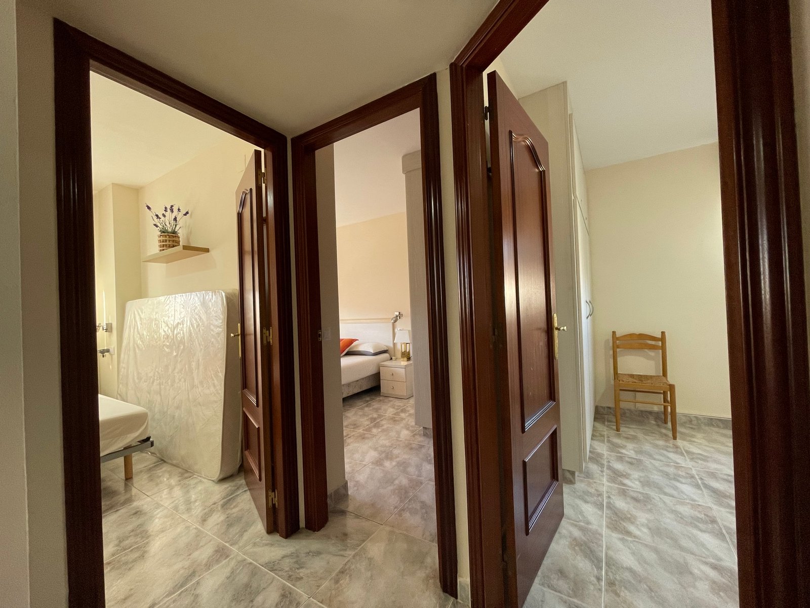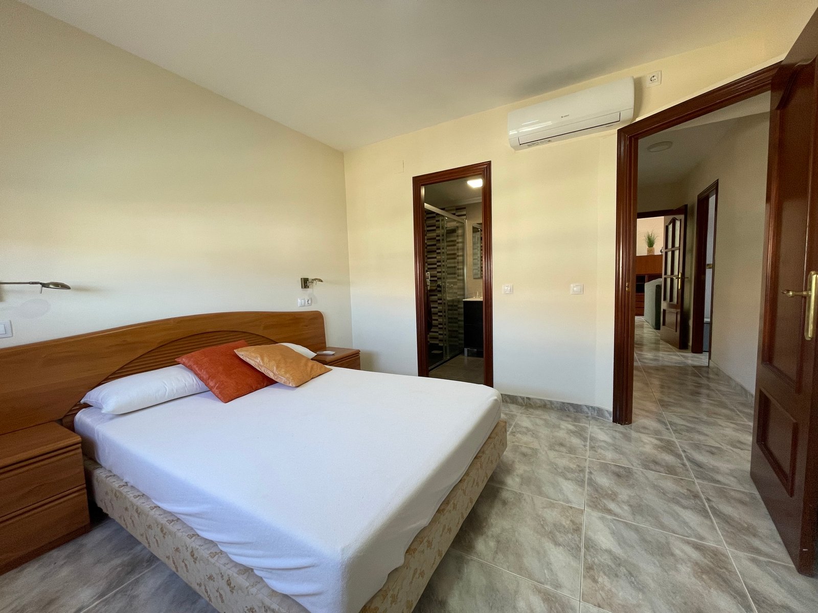 Dispone de 3 habitaciones con 3 camas de matrimonio (una tipo suite), 2 baños, salón-comedor, cocina equipada, terraza y ascensor.