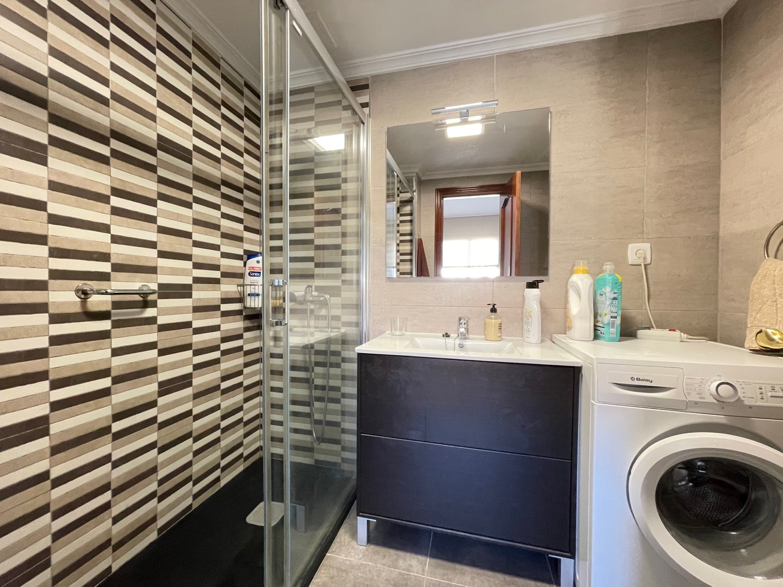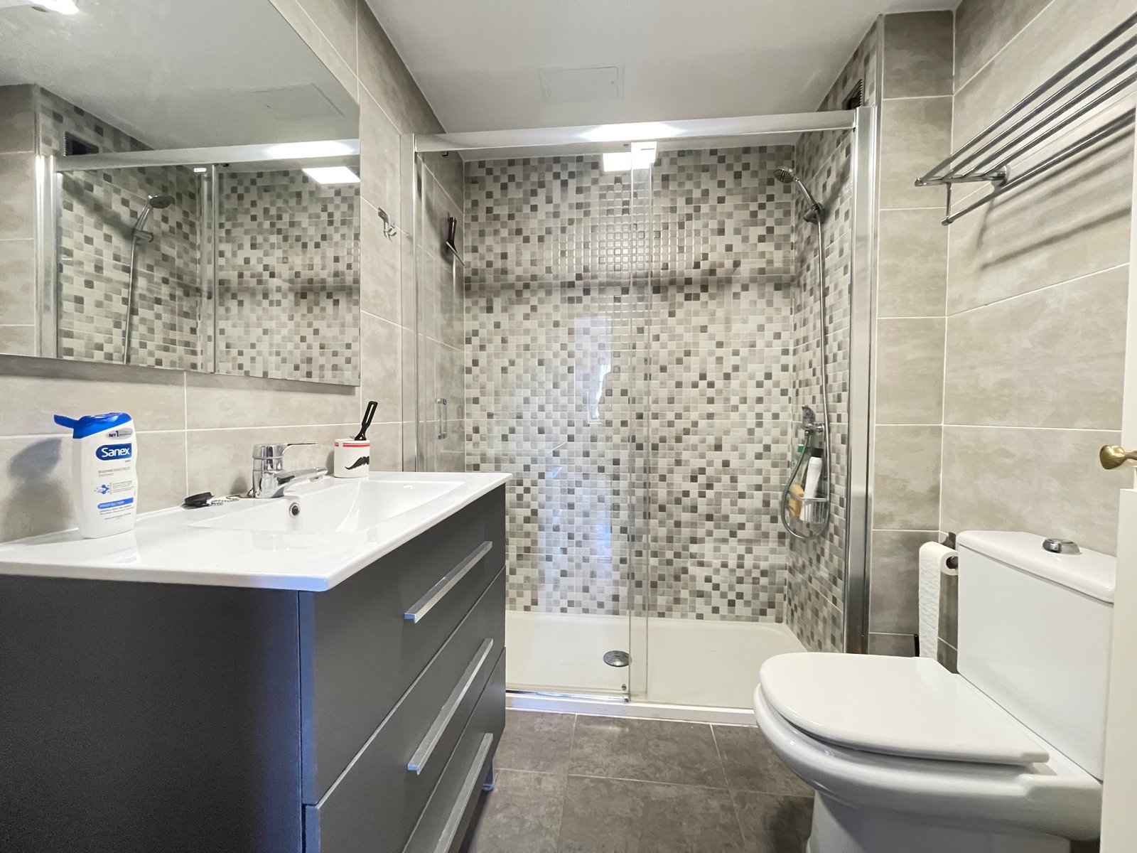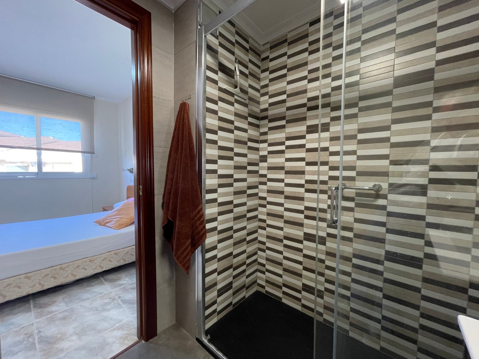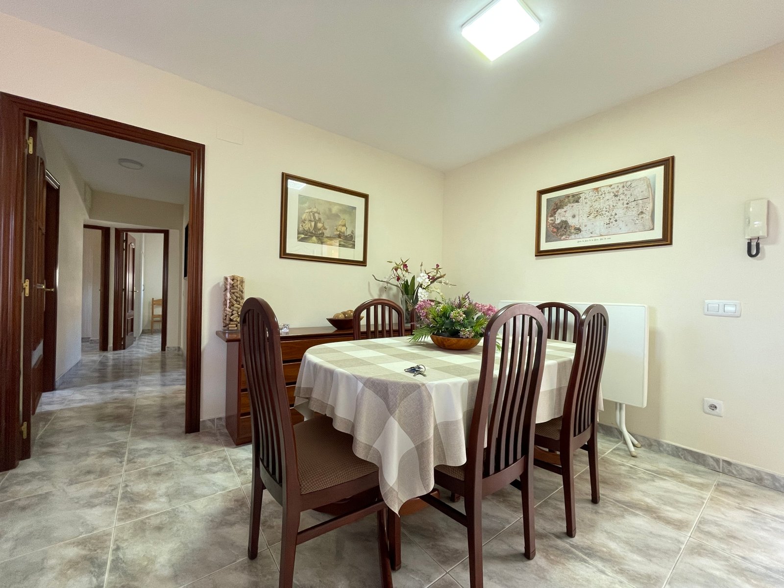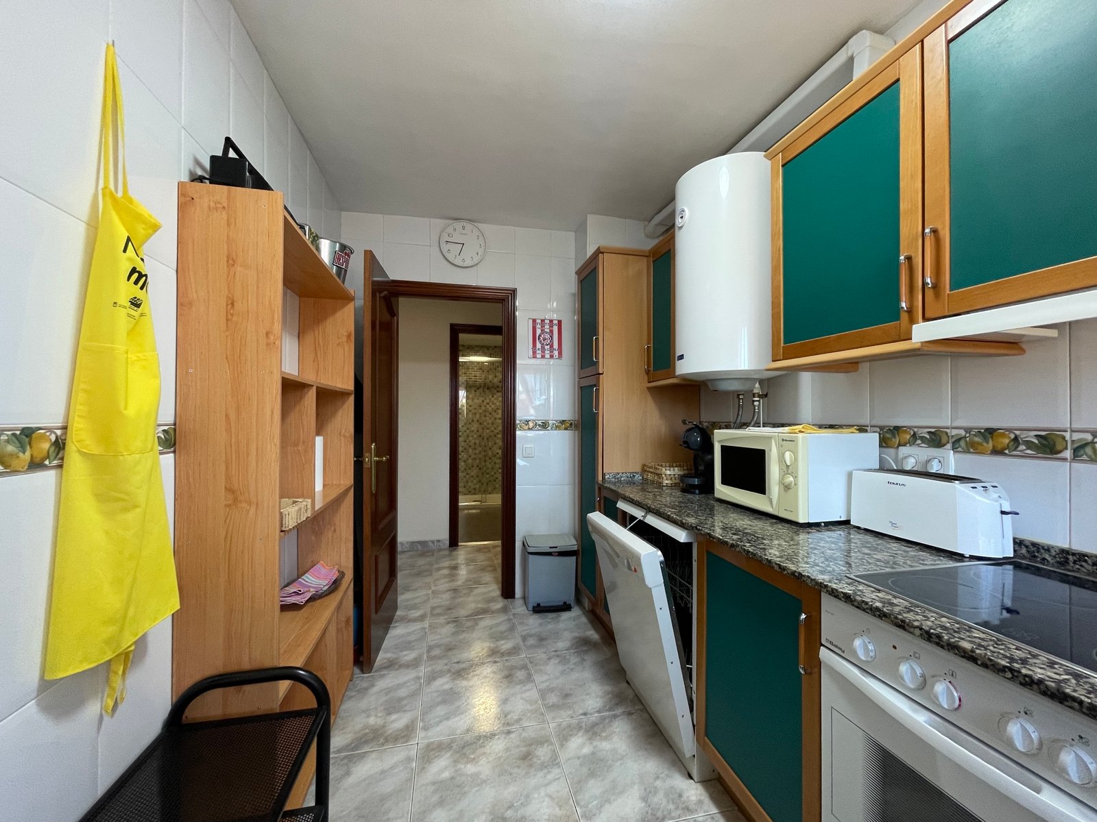 Dispone de 3 habitaciones con 3 camas de matrimonio (una tipo suite), 2 baños, salón-comedor, cocina equipada, terraza y ascensor.