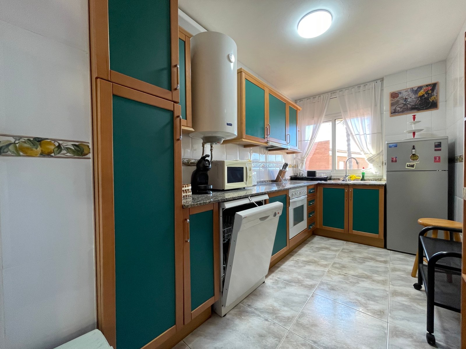 Tiene cafetera y microondas.