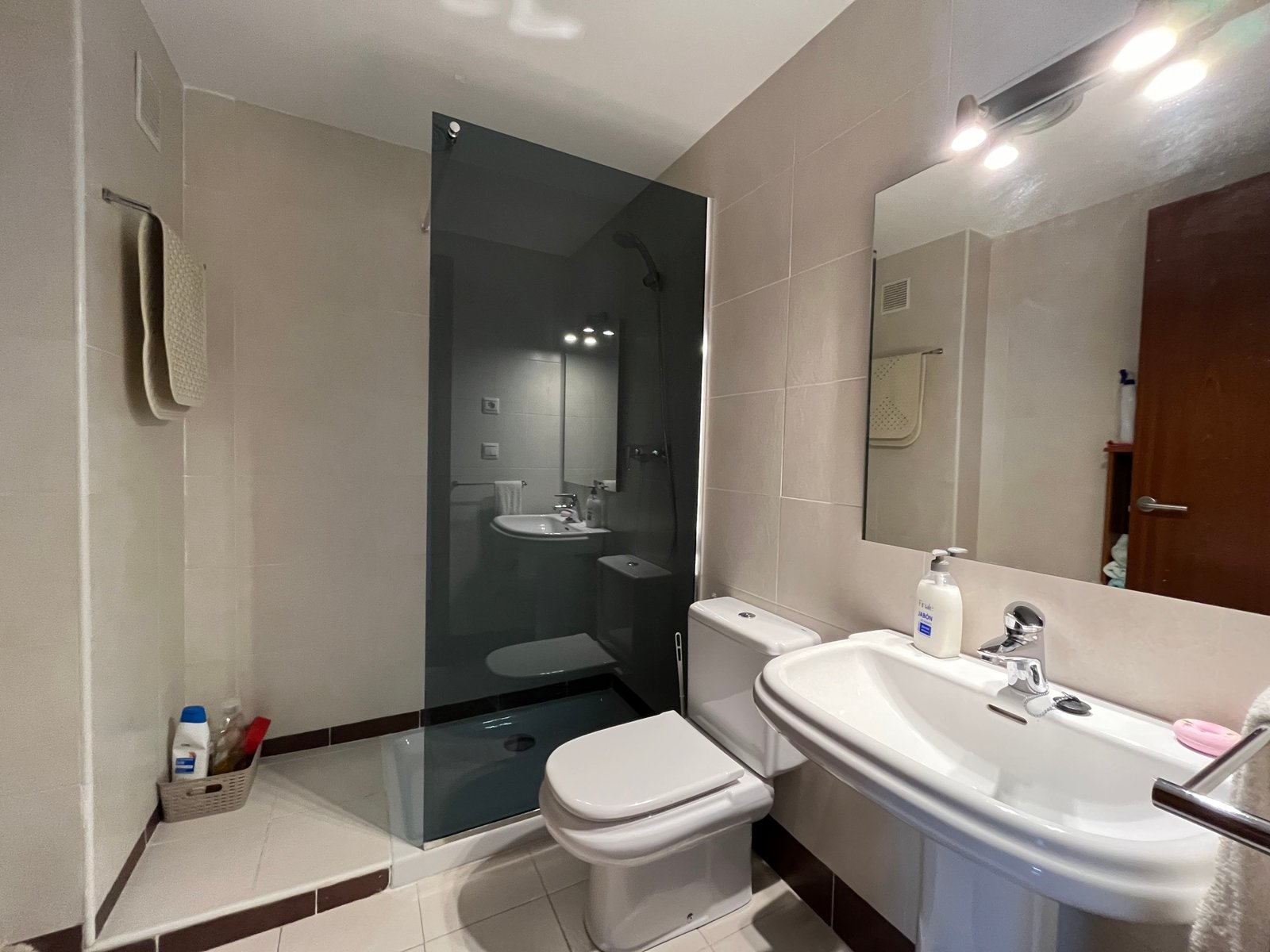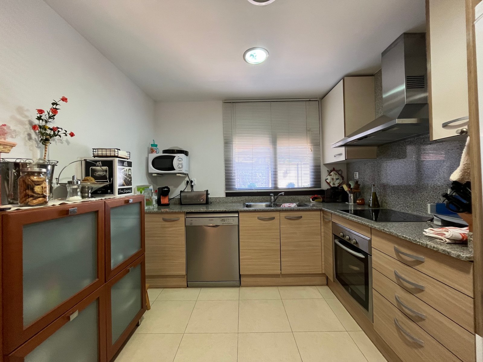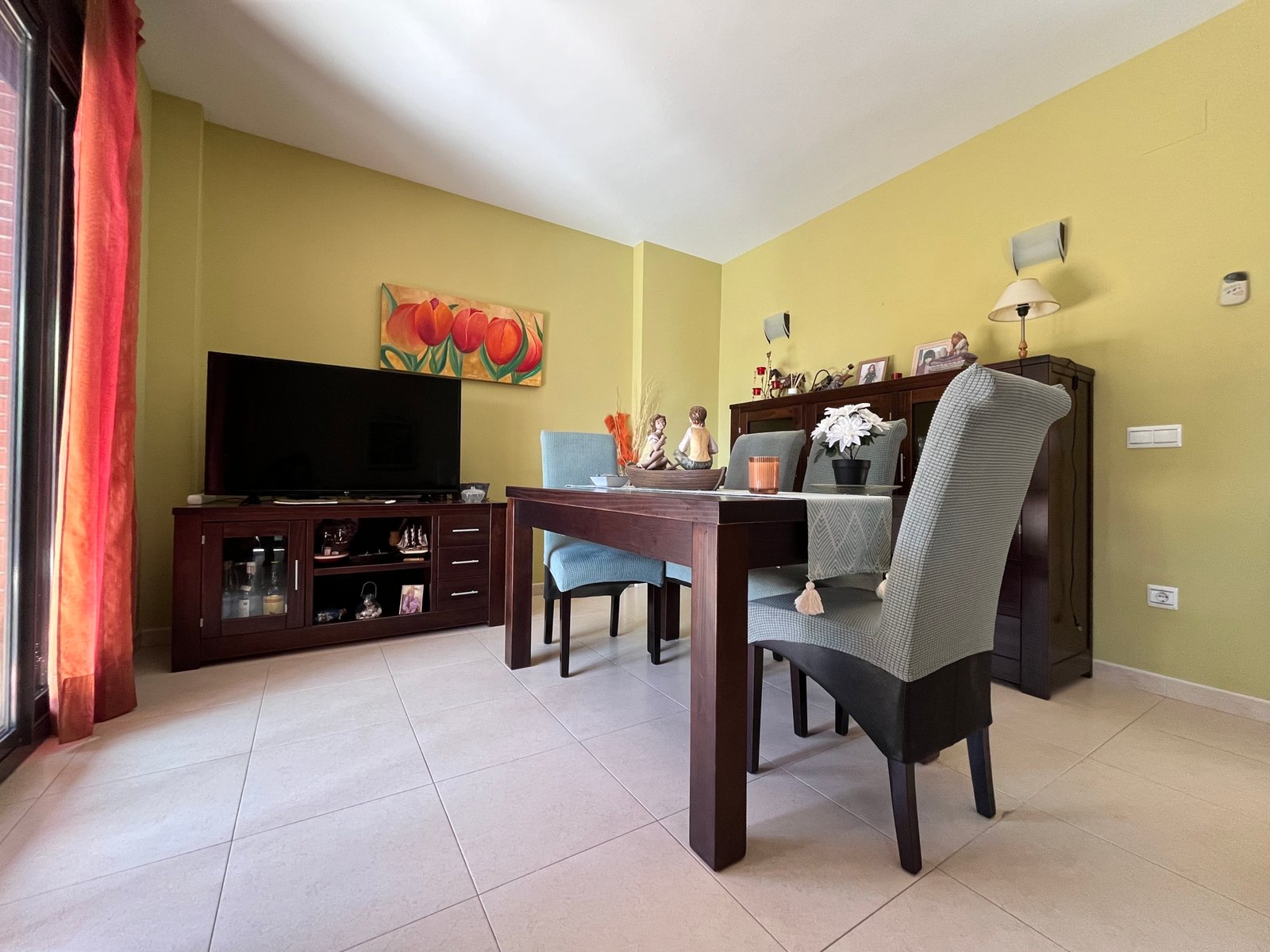 En la planta principal, un acogedor salón-comedor con acceso directo a una terraza privada y al jardín permite disfrutar del aire libre y de agradables vistas a las zonas verdes. La cocina independiente, de vitrocerámica, está equipada con nevera, microondas y horno, proporcionando un espacio práctico y funcional.