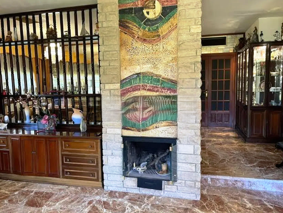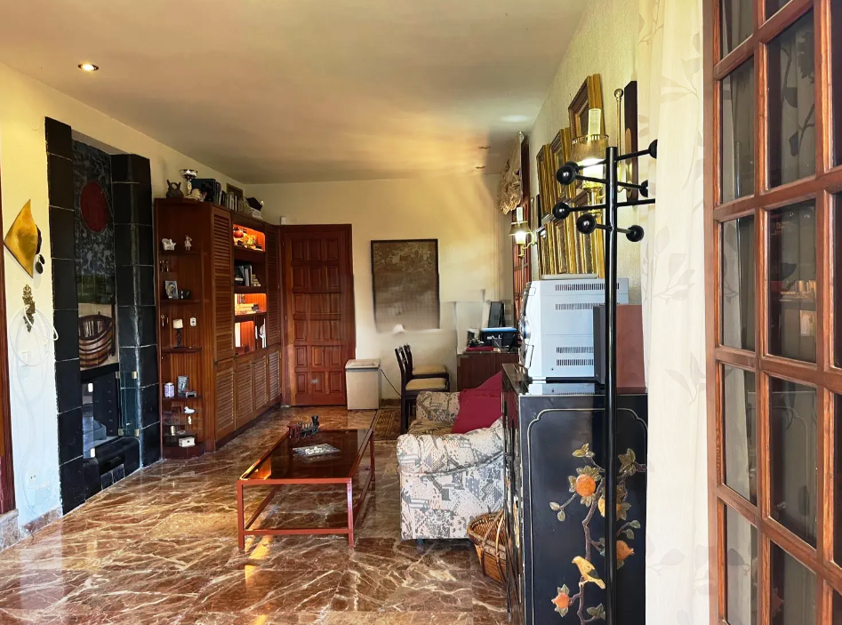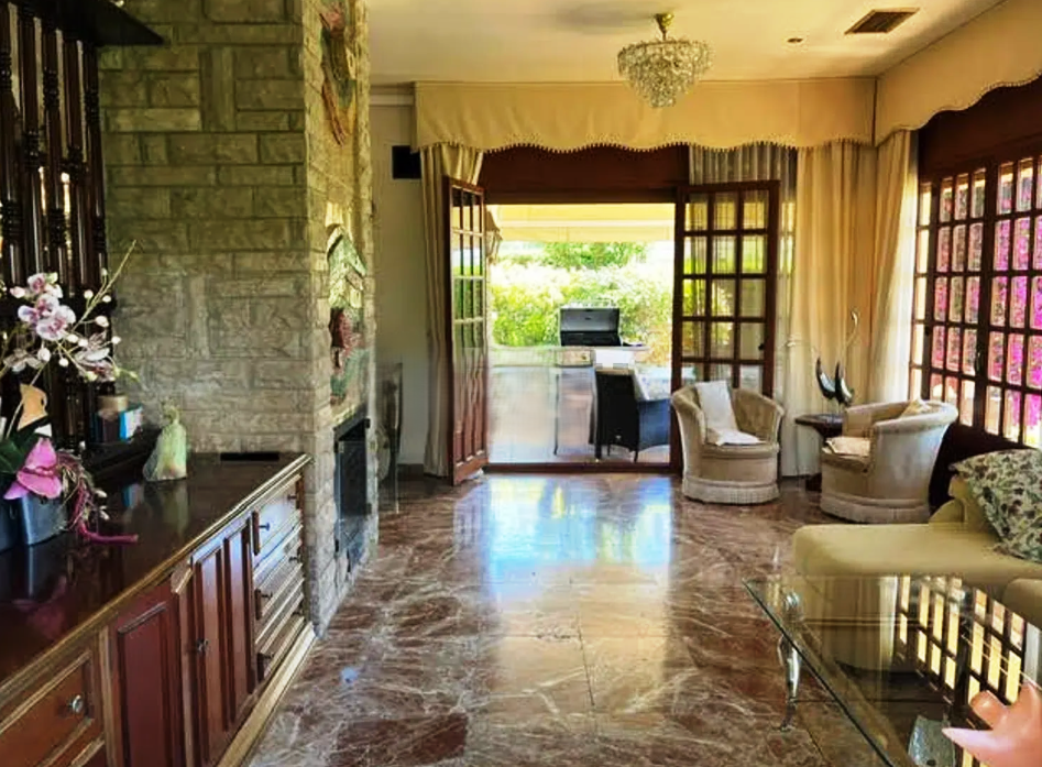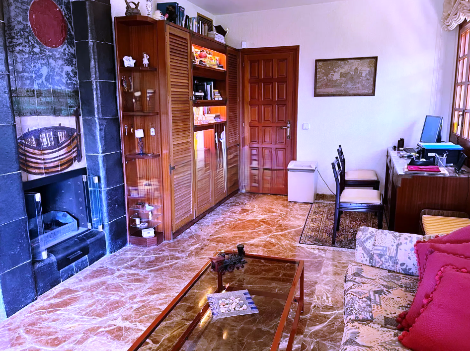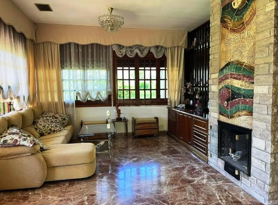 Un Amplio y luminoso salón-comedor con chimenea y salida directa a porche, ideal para disfrutar del exterior.